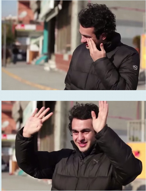 O rapaz, muito envergonhado, continuou caminhando com a sua namorada e chegam a um parque onde tinha vários recrutas que gritam: